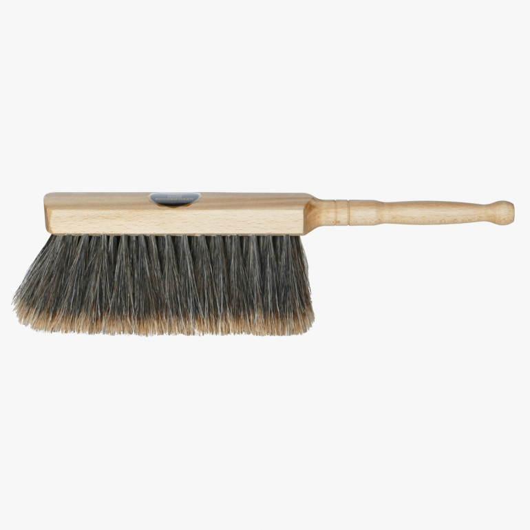 Das Haushalts-Set Altmaier ist mit geschlitzten Borsten aus reinem Ross-Schweifhaar besonders gut bestückt. Das Material wurde in einem zusätzlichen Arbeitsgang geschlitzt, wobei der Besen durch das Aufspalten der Borsten ein größeres Volumen erhält. Somit werden die Schmutzpartikel noch effizienter aufgenommen.