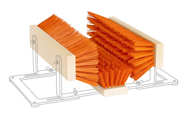 Die Bürsten bestehen aus deutschem Buchenholz und sind mit PET-Fasern bestückt, die aus recycelten Kunststoffflaschen gewonnen werden. Dieses Material überzeugt durch seine hohe Abriebfestigkeit und Langlebigkeit – deutlich robuster als herkömmliches PVC. So müssen die Bürsten nur selten ersetzt werden.