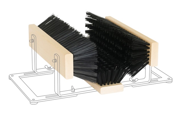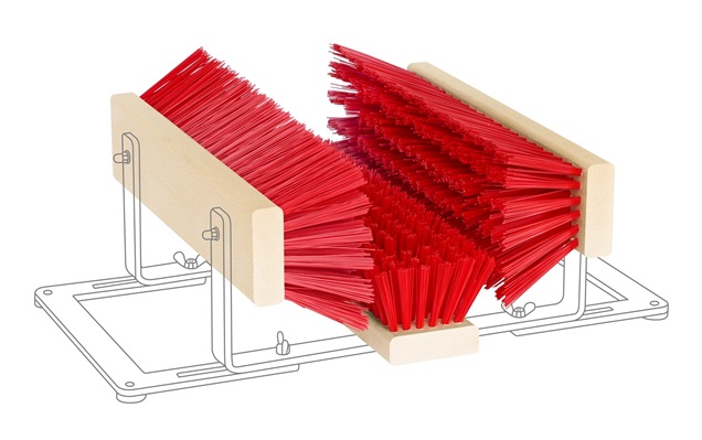 Verunreinigungen werden gezielt von den drei Reinigungsbürsten herausgelöst. Die Bodenbürste wurde um 2,5 cm gekürzt, um eine höhere Härte und Widerstandskraft zu erzielen – ideal für die gründliche Reinigung des Schuhprofils. Die beiden Seitenbürsten entfernen zuverlässig den restlichen Schmutz an den Schuhrändern.