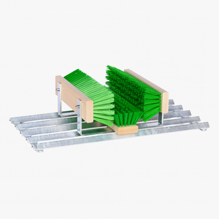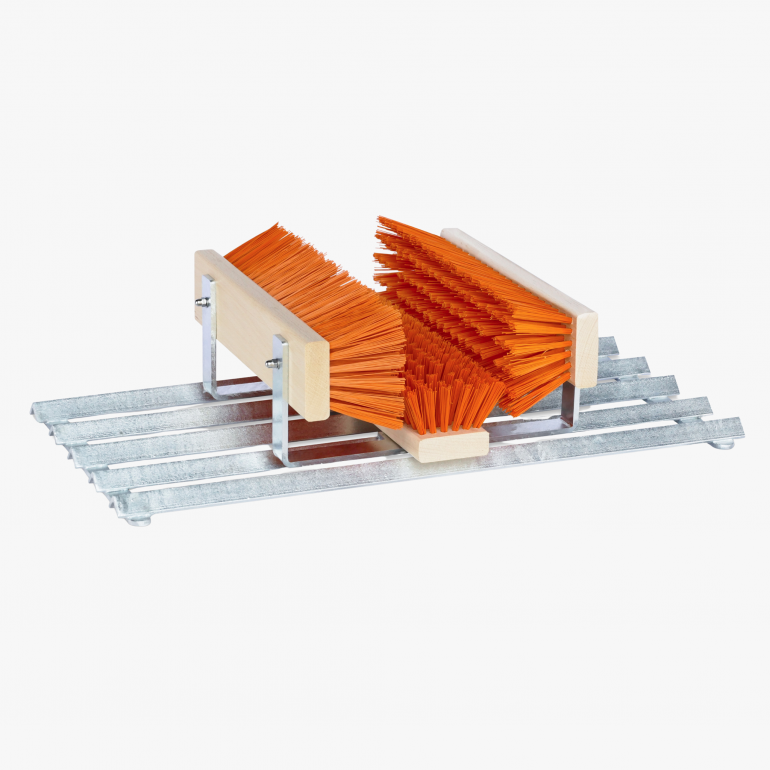 Coarse dirt is removed when entering by the side angle profiles. For finer impurities, three precisely positioned cleaning brushes take over. The bottom brush has been shortened by 2.5 cm to achieve greater hardness and resistance – ideal for thoroughly cleaning shoe soles. The two side brushes reliably remove remaining dirt from the shoe edges.