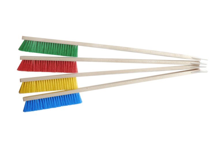 Diese Besen haben speziell abgerundete Borsten, welche sich bei der Benutzung rechtwinklig in die Oberfläche krallen und so alle Verschmutzungen herauslösen.