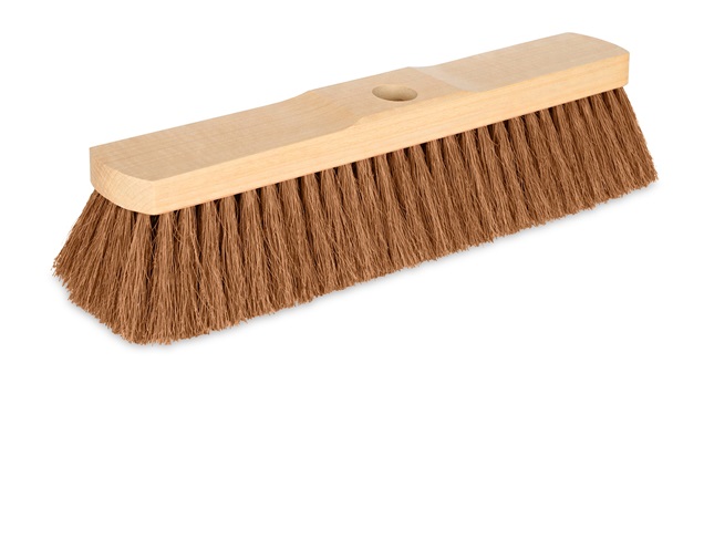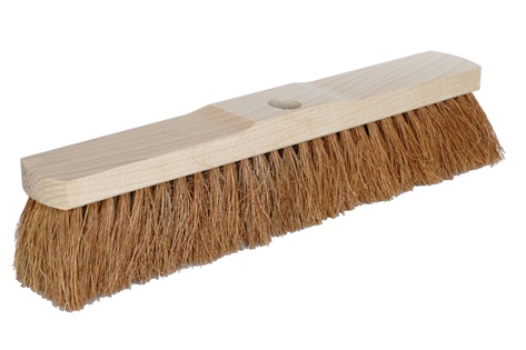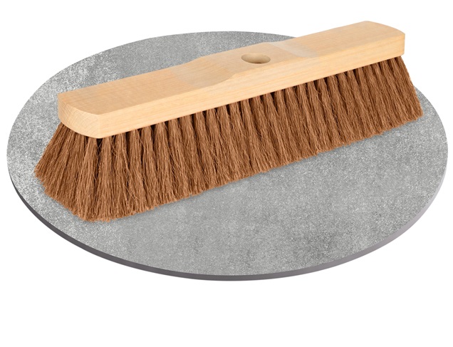 Saalbesen mit einem reinen, zugerichteten Naturkokos und Stielloch. Hergestellt zur Reinigung von glatten oder feinen Böden.