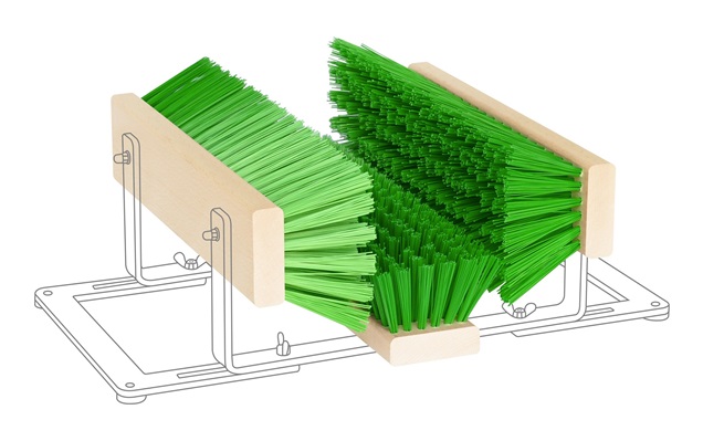 Verunreinigungen werden gezielt von den drei Reinigungsbürsten herausgelöst. Die Bodenbürste wurde um 2,5 cm gekürzt, um eine höhere Härte und Widerstandskraft zu erzielen – ideal für die gründliche Reinigung des Schuhprofils. Die beiden Seitenbürsten entfernen zuverlässig den restlichen Schmutz an den Schuhrändern.