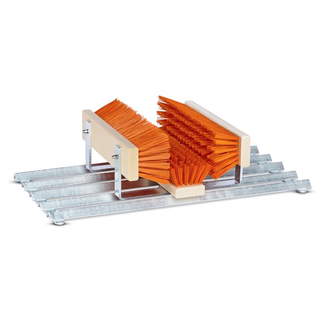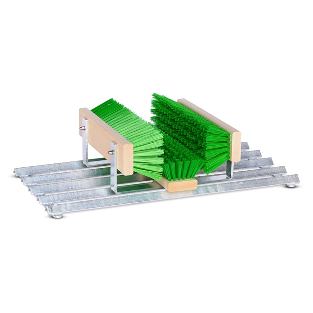 Grober Schmutz wird bei einem sicheren Stand an den seitlichen Winkelprofilen abgetreten. Feinere Verunreinigungen können im Anschluss von den drei Reinigungsbürsten herausgelöst werden. Zur besseren Säuberung des Schuhprofils wurde die Bodenbürste um 2,5 Zentimeter gekürzt. Dadurch ist sie deutlich härter und widerstandsfähiger. Die Seitenbürsten entfernen den restlichen Dreck.