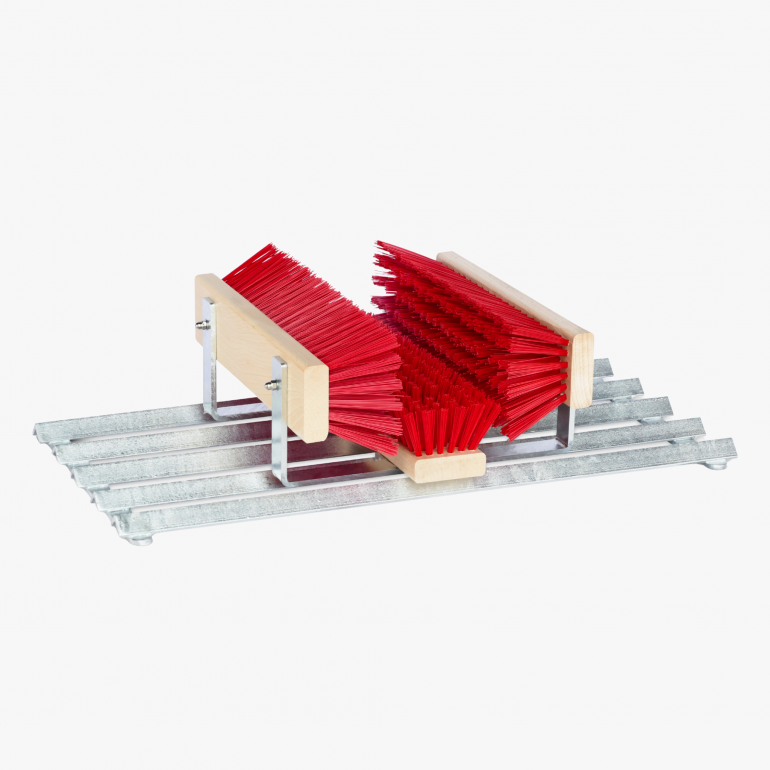 Coarse dirt is removed when entering by the side angle profiles. For finer impurities, three precisely positioned cleaning brushes take over. The bottom brush has been shortened by 2.5 cm to achieve greater hardness and resistance – ideal for thoroughly cleaning shoe soles. The two side brushes reliably remove remaining dirt from the shoe edges.