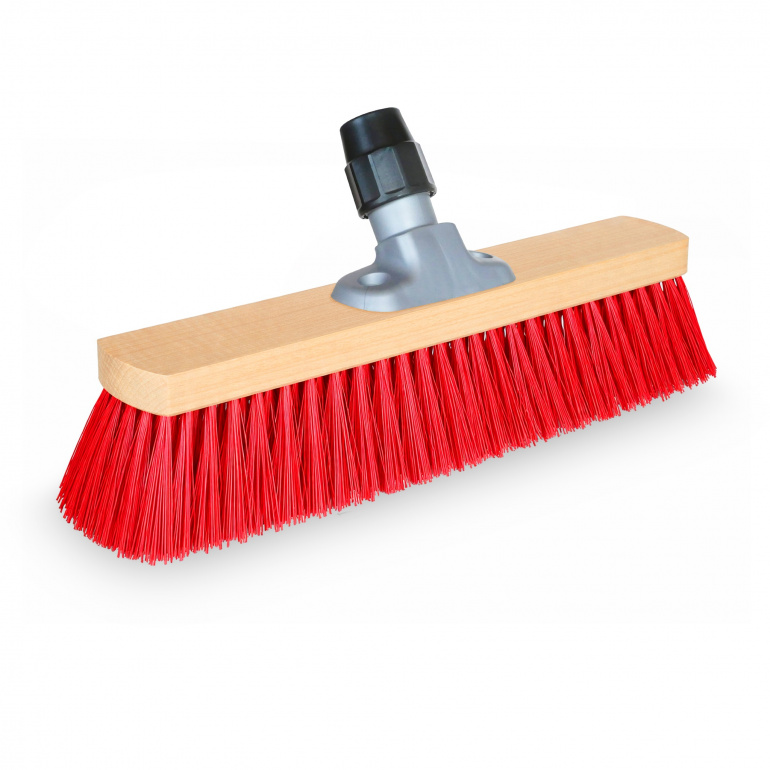 Known as the classic street broom, this sturdy outdoor model features a robust beechwood body with a universal galvanized handle holder and dense red Elaston bristles. A true all‑rounder for sweeping dirt on all surfaces, the dimensionally stable PET fiber proves effective against coarse debris and is resistant to alcohol, alkalis, and gasoline.