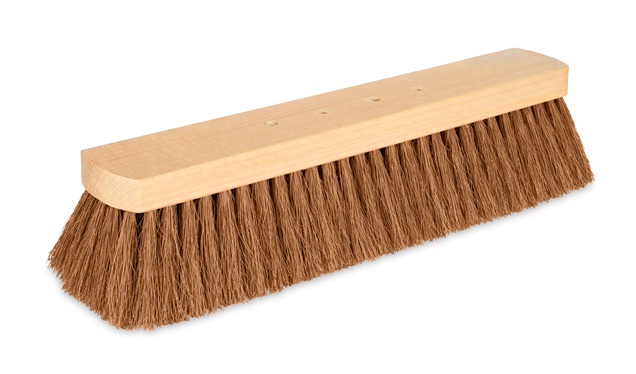 Saalbesen mit reinem Naturkokos Kunstborste. Hergestellt zur Reinigung von glatten oder feinen Böden.