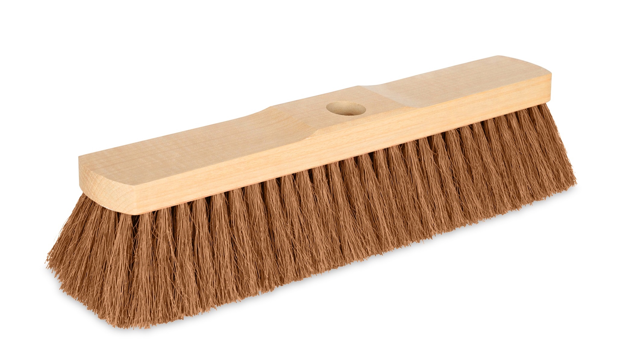 Saalbesen mit einem reinen, zugerichteten Naturkokos und Stielloch. Hergestellt zur Reinigung von glatten oder feinen Böden.
