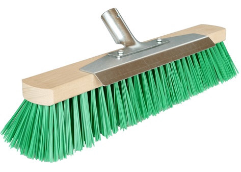 Die formstabile PET-Faser ist bestens für den Außenbereich geeignet. Sie ist im Vergleich zu PVC-Borsten deutlich langlebiger und abriebfester. Mit dem Kratzblech können festgebackene Dreckklumpen oder Kaugummis von der Oberfläche geschabt werden.